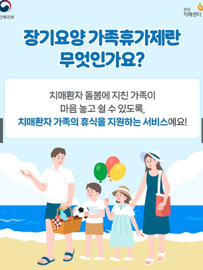 장기요양 가족휴가제는 치매환자를 돌보는 가족들이 마음 편히 쉴 수 있도록 돕는 서비스예요. 장기간의 돌봄으로 지친 가족들에게 잠시나마 재충전의 시간을 제공하는 제도인데요, 치매환자를 대신 돌봐주는 서비스를 통해 가족들이 부담을 덜고 자신만의 시간을 가질 수 있도록 지원합니다.